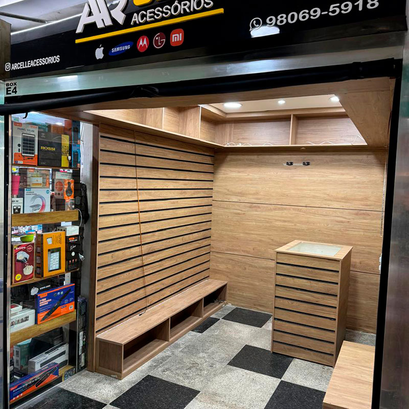 Espaços de 7 a 70 m2 para diversas atividades comerciais ou prestação de serviços, podendo haver expansão entre paredes, chegando até a 120 m2.